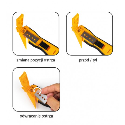 – bezpiecznie rozcina karton, folię stretch, taśmy spinające itd.