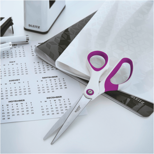 - wysokiej jakości nożyczki biurowe ze stali nierdzewnej powlekane tytanem