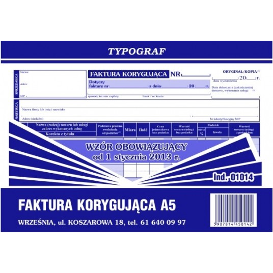 DRUK FAKTURA KORYGUJĄCA A5 #01014