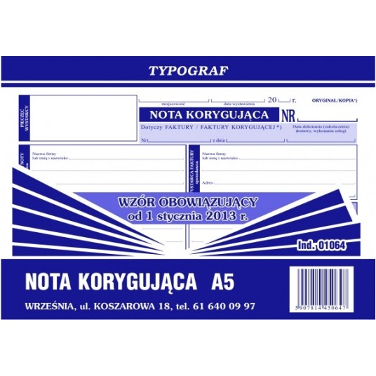 DRUK NOTA KORYGUJĄCA A5 #01064