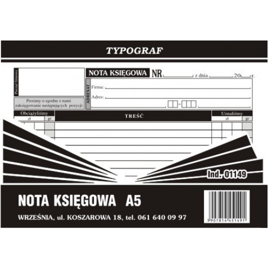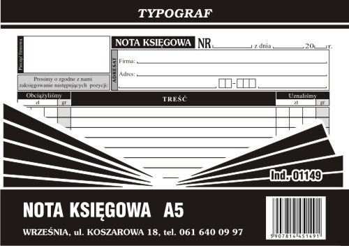 DRUK NOTA KSIĘGOWA A5 #01149