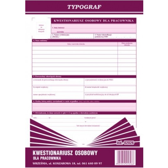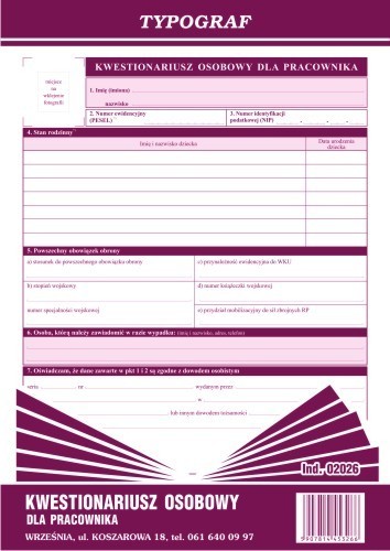 DRUK KWESTIONARIUSZ OSOBOWY A4/40K #02026