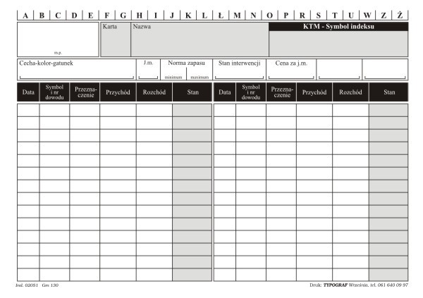 DRUK KARTOTEKA MAGAZYNOWA A5 100SZT #02051