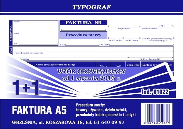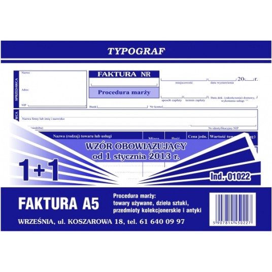 DRUK FAKTURA VAT A5 MARŻA 1+1 #01022