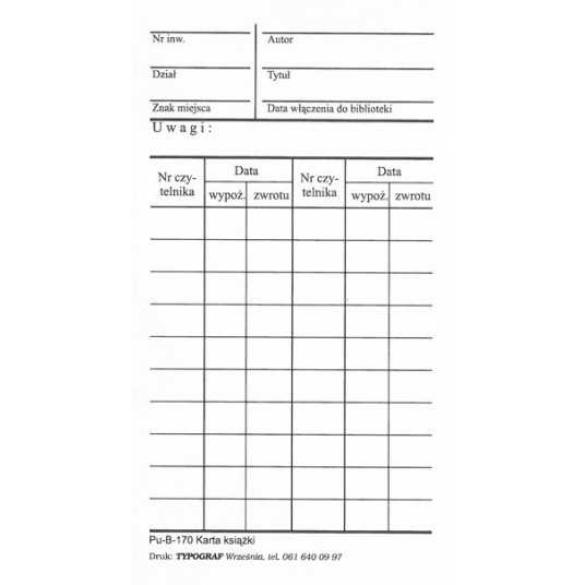 DRUK KARTA KSIĄŻKI A-7 B170 /100/ #02088